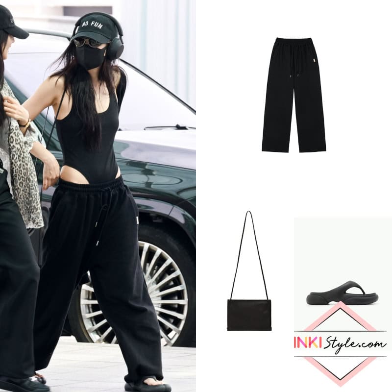 Jennie, on the other hand, opted for a sporty and bold vibe in ROCKCAKE appliqué R pocket joggers, styling them with The Row large to go crossbody bag. She finished her relaxed look with PAES flip flop 02 sandals, adding her signature off-duty cool.