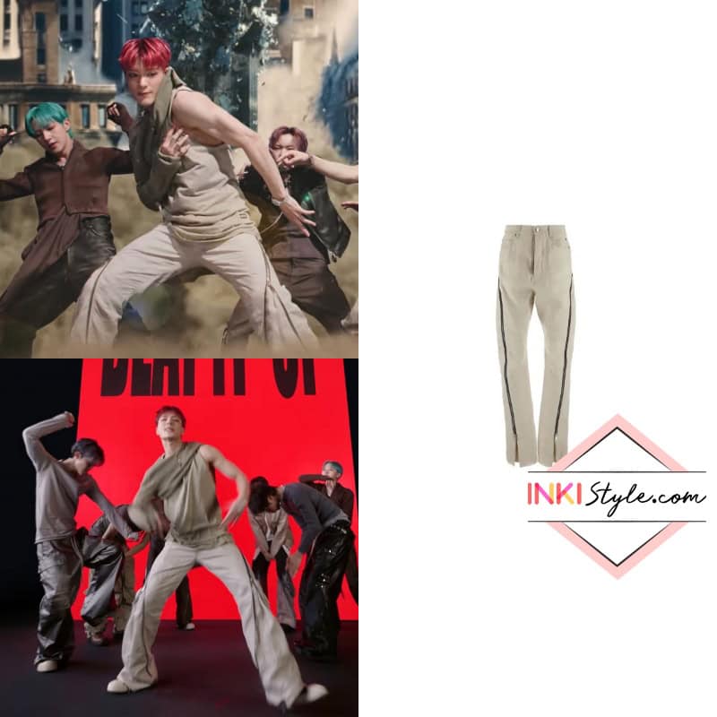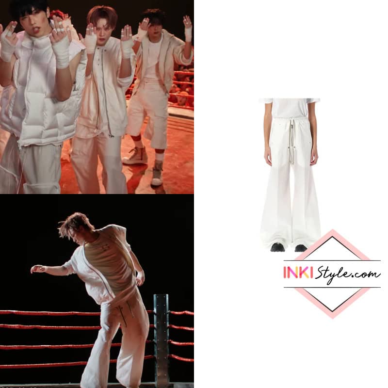 Closing out his fashion lineup, Jeno wears Rick Owens straight-leg trousers, a wardrobe staple in avant-garde styling.