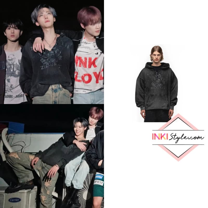 In a casual moment, Jaemin wears the NO/FAITH STUDIOS eagle vintage used hoodie, bringing vintage American graphics into contemporary streetwear.