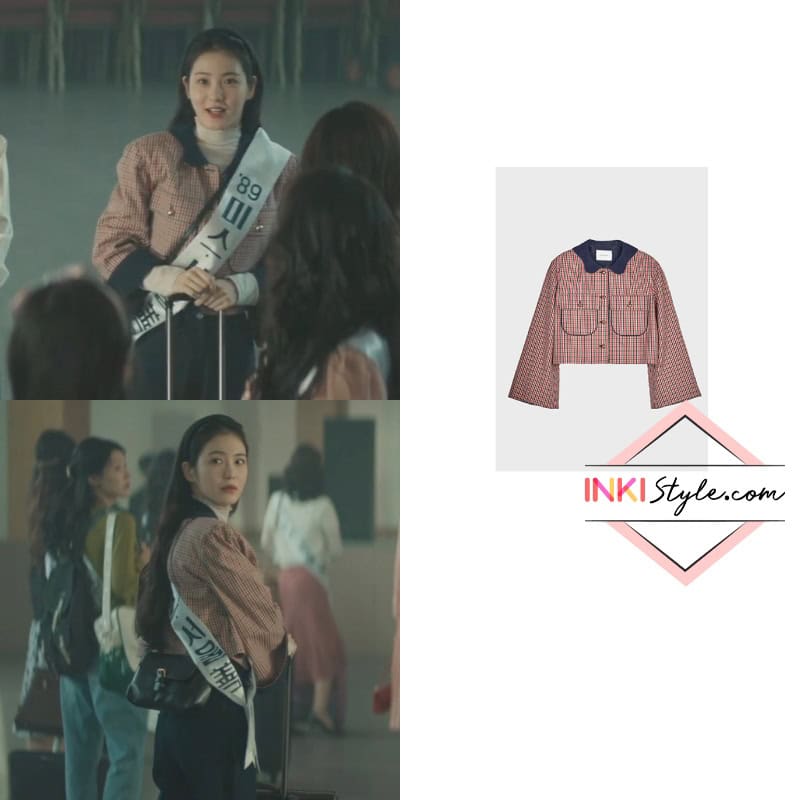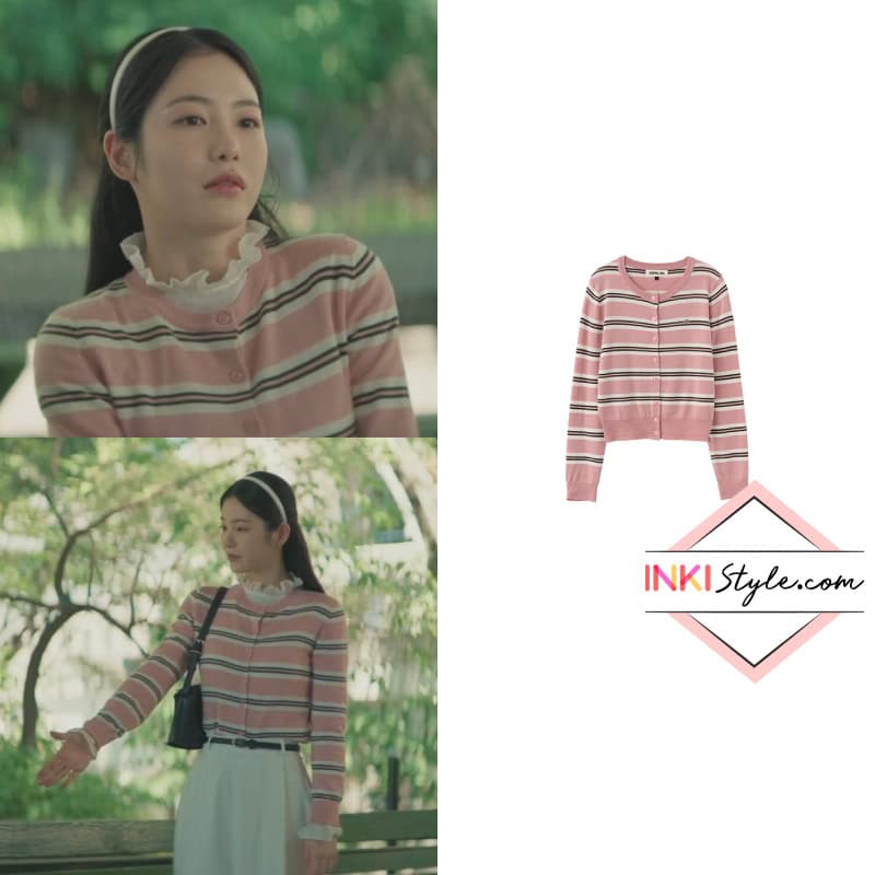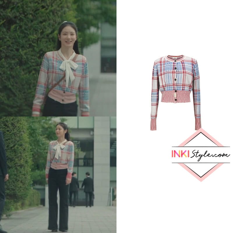 In episode 11, Ye-Eun brightens up the screen in this AMONG mixed color check crop cardigan, blending a cheerful pattern with a cropped fit that feels both cute and nostalgic.