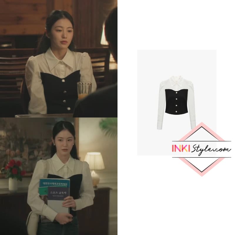 Ye-Eun’s next outfit features a sophisticated knit bustier blouse in white from IT MICHAA.