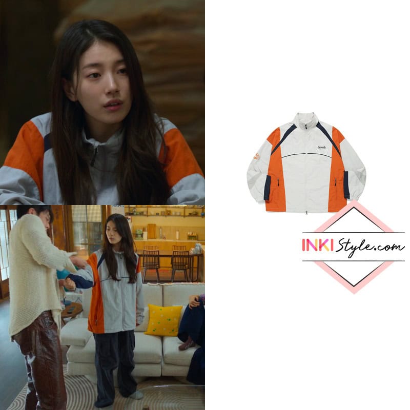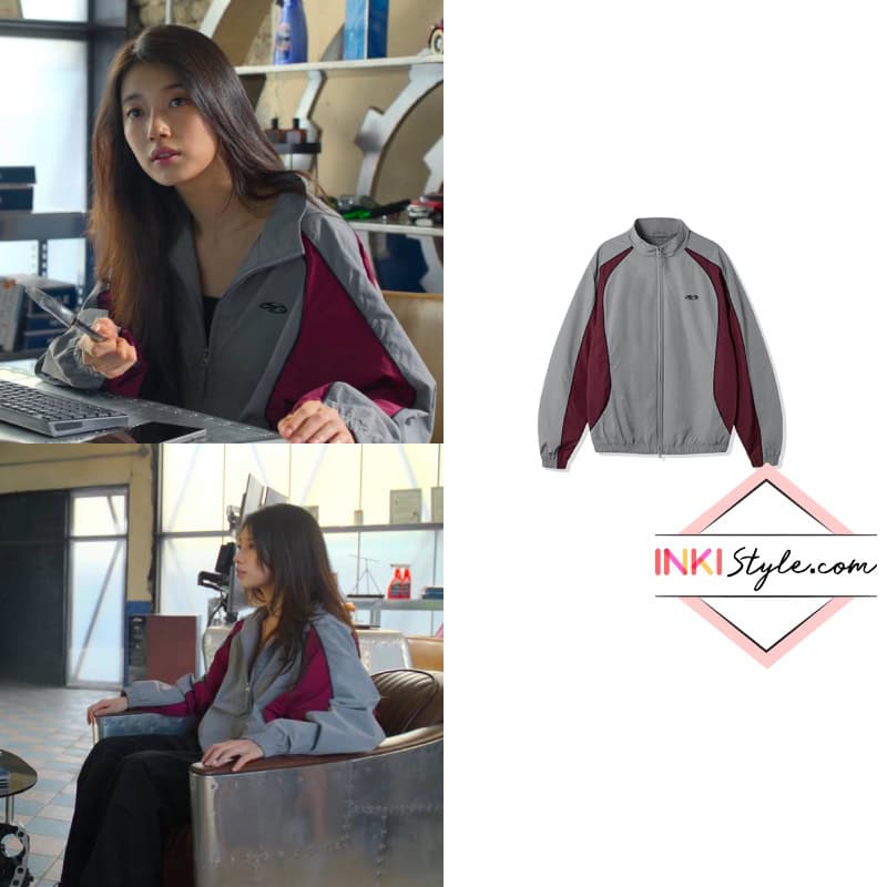 In a more casual moment, she sported a blue tornado raglan windbreaker from TIMCOMIX, bringing sporty vibes to the auto shop scene.